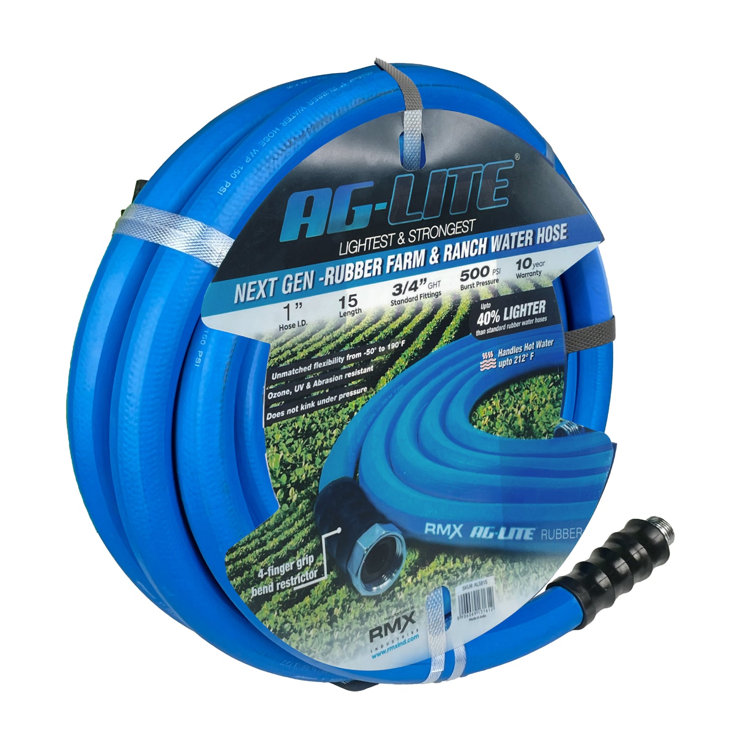 The Ag-Lite Rubber Water Hose Assembly, serving as an extension hose, is designed with a substantial 1" diameter and a convenient 15-foot length. Crafted from durable rubber and equipped with dependable GHT solid brass couplings, this hose assembly is purpose-built for extending your reach in water delivery needs. With its manageable 15-foot length, it's perfect for bridging the gap between your existing hoses, making it a practical and reliable solution for extending your watering capabilities in agricultural or industrial settings. This extension hose ensures efficient and dependable water delivery, offering a versatile solution for your watering requirements.
