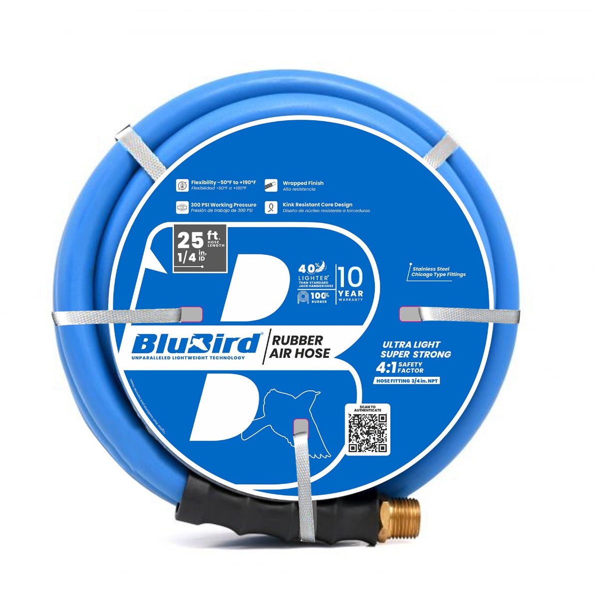 Every BluBird 1/4" air hose is backed by a 10-Year Limited Warranty, reflecting the confidence of thousands of professional users across the U.S. and Canada Choose a hose that matches the pace, precision, and pressure of your work.