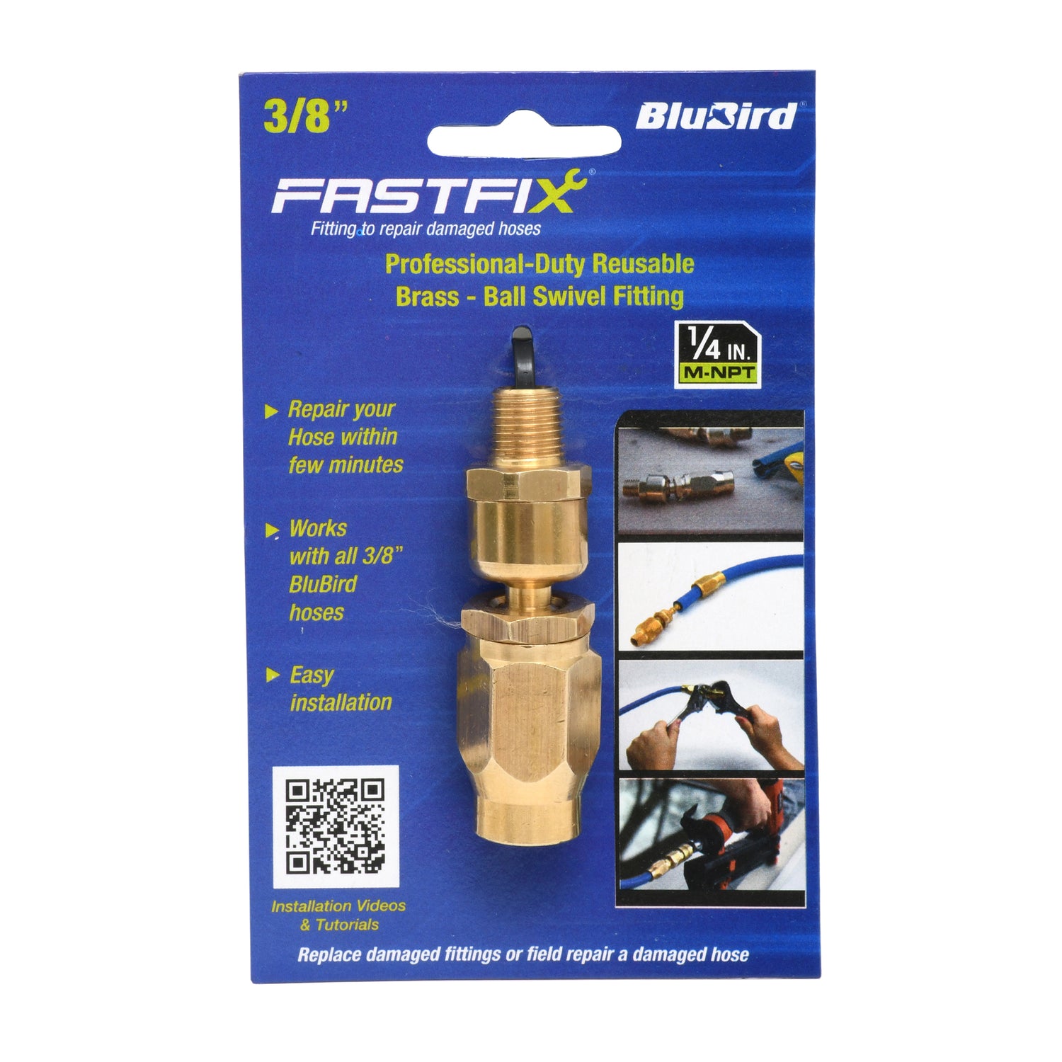 Introducing the Fast Fix 3/8" Air Hose Assembly Repair Fitting, now featuring a 1/4" MNPT Swivel – your go-to solution for air hose repairs. When your 3/8" air hose is damaged or leaking, this fitting provides a swift, flexible, and dependable fix. Precision-engineered with a swivel design, it ensures a secure, versatile connection, putting an end to costly hose replacements and downtime. With this innovative solution, you can keep your air tools performing at their best and get back to work promptly and confidently.