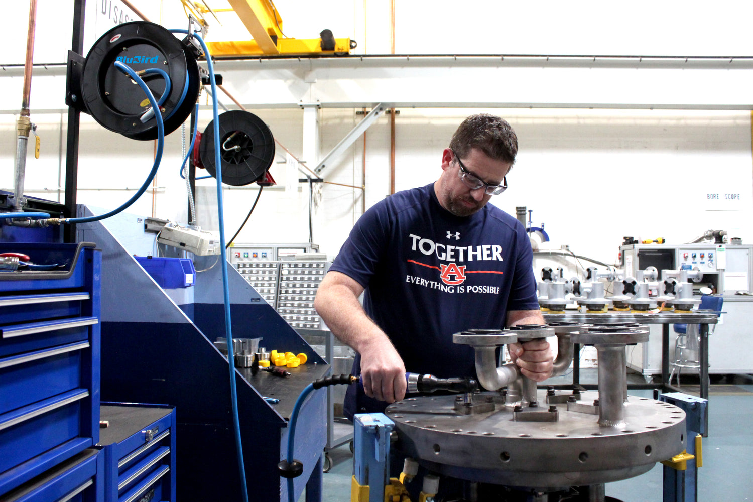 The BluBird air hose reel is a powerhouse of durability, crafted from corrosion-resistant powder-coated steel. It boasts a single adjustable guide arm, an L-Shaped base with groove reinforcement for steadfast support, and is paired with the world-renowned BluBird Air Hose. This Hose Reel features a fully enclosed multi-position 12-point ratchet spring system for locking the hose at various lengths. It incorporates brass swivel joints in the hose inlet connection to prevent leaks, while a reel stopper and four non-snag rollers reduce hose abrasion. This versatile hose reel can be effortlessly mounted on floors, walls, or ceilings, making it an ideal choice for automotive and DIY enthusiasts.