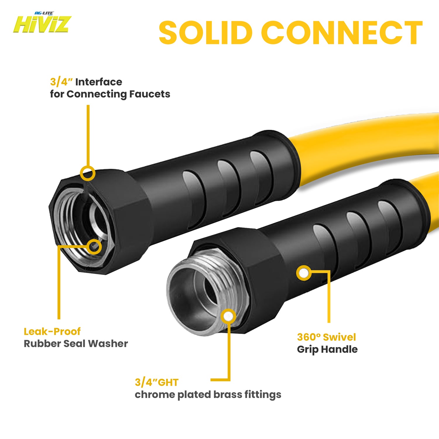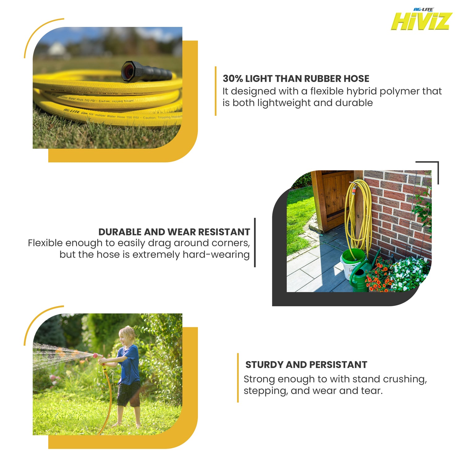 The AG-Lite Hiviz Water Hose (5/8" 50') offers industrial-grade durability with a high-visibility design for enhanced safety. Lightweight, flexible, and kink-resistant, it withstands extreme temperatures and high-pressure use. Ideal for agriculture, landscaping, and industrial cleaning.