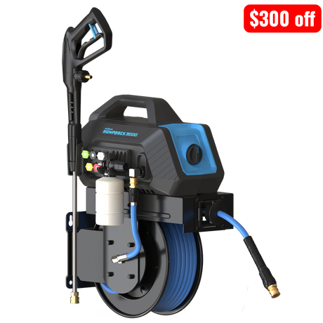 BluShield Heavy Duty Pressure Washer Hose Reel with Aramid Braided Hose, 6' Lead-in Hose