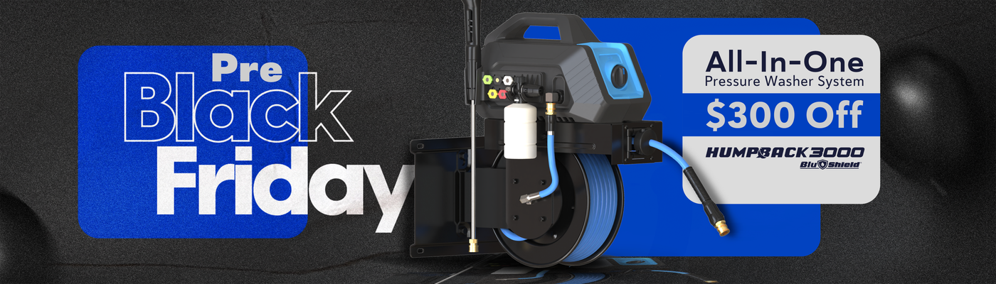 BluShield HumpBack 3000PSI All-in-One Pressure Washer System, Auto-Retractable Hose Reel, Industrial Pump, Accessories - 50 Feet is backordered and will ship as soon as it is back in stock.