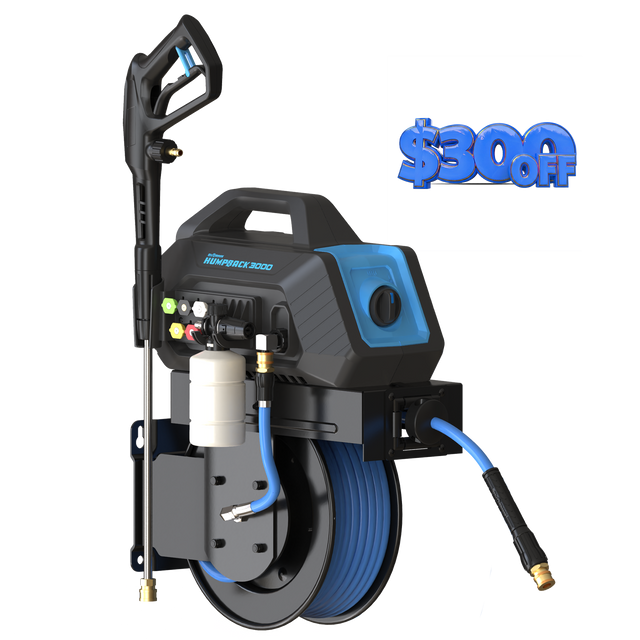 BluShield HumpBack 3000PSI All-in-One Pressure Washer System, Auto-Retractable Hose Reel, Industrial Pump, Accessories